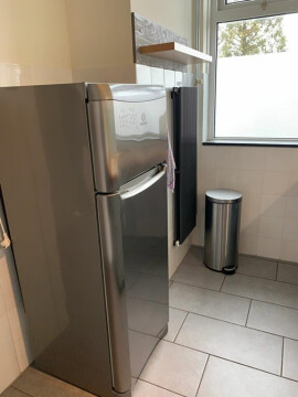 The modern bathroom has a toilet, towel radiator, walk in shower and washbasin. The bedroom on this floor is about 13 m2. There is a separate laundry area. The basement has space to park your bike.